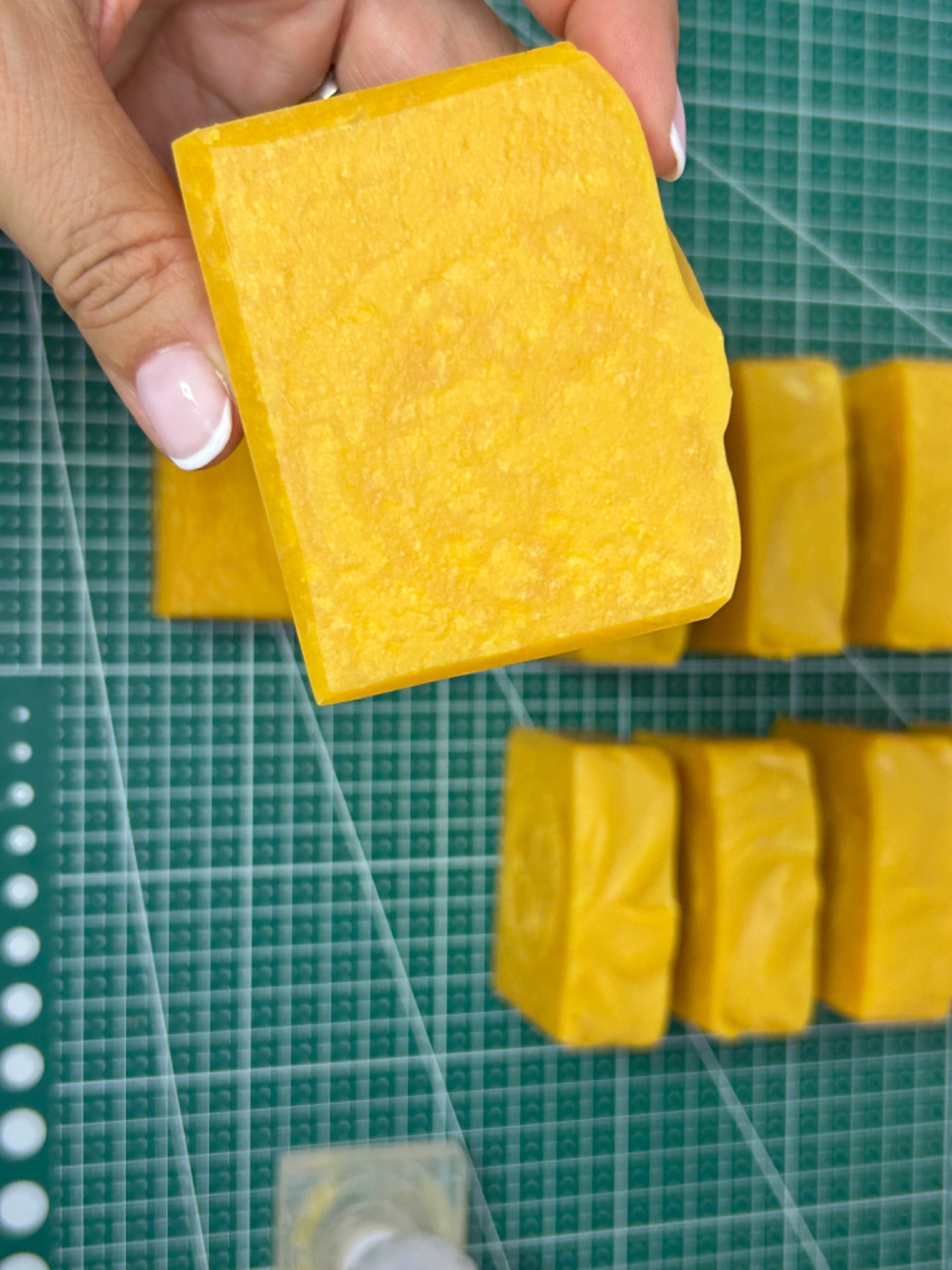 Mas tarde comencé a trabajar con extractos de madera y flores. Los extractos suelen ser solubles en agua y generalmente sensibles a PH demasiado altos, por lo que la forma adecuada de incorporarlos era disolver en agua templada e incorporar en la traza. Normalmente trabajo con un 35% conc., que es mi favorita, pero en aquel entonces, ya había investigado sobre los ríos y decidí comenzar a investigar si podia reproducirlos. De vez en cuando, hacía un jabon con el 30% conc. e investigaba.